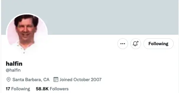 Another part of Bitcoin culture is following @halfin. Hal Finney was the first person to tweet about Bitcoin, and the first recipient of a Bitcoin transaction from Satoshi Nakamoto. Tragically, Halfin was diagnosed with ALS, a fatal disease of the motor neurons which leads to gradual paralysis. But even in the late stages of the disease, when he was bound to a wheel-chair and on life support, he used an interface for his eyes which allowed him to continue working on Bitcoin. His strength and poise all the way to the end is the stuff of legend and makes him a hero in Bitcoin culture.