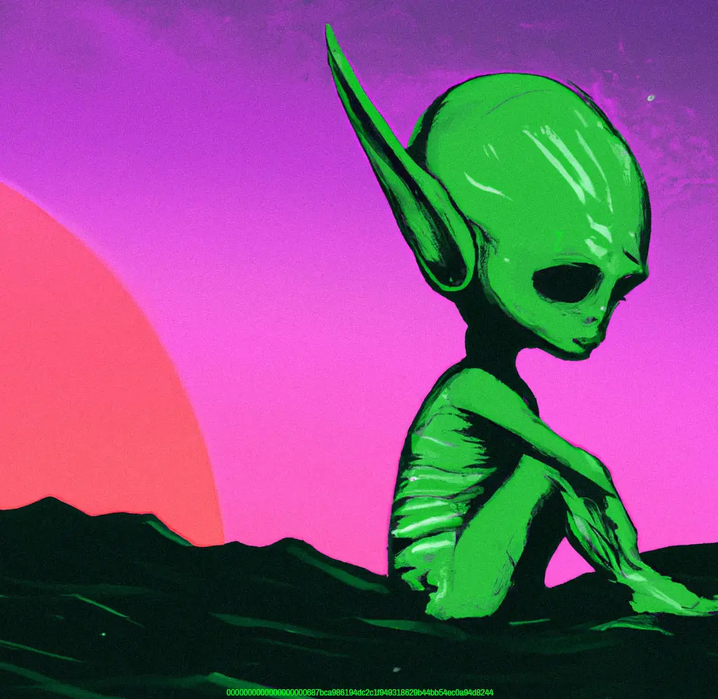 A lone alien from a galaxy far away, Dreamed of riches that he could trade all day, He chased the crypto markets high and low, Hoping to strike it rich and watch his wealth grow.