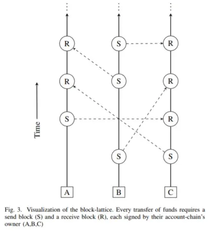The transaction ledger is a block-lattice where each user has their own dedicated blockchain. These individual blockchains are called “account chains”. The account chains consists of actual transactions appearing in the network that are settled: send, receive and zApp related transactions. Every user has an account chain that is independently updated from other account chains as the virtual voting progresses.