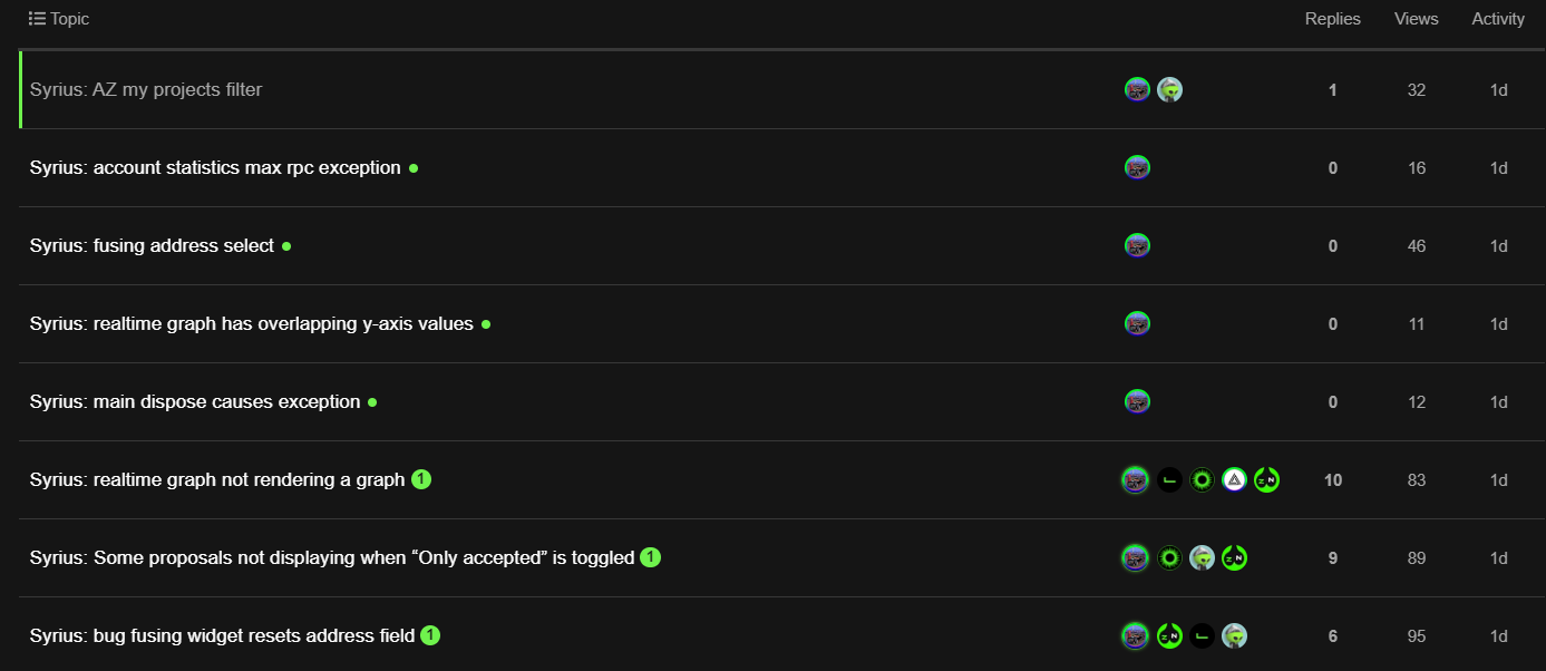 - Crypto Fish is working on testing SYRIUS improvements and fixing bugs. He is also maintaining .NET SDK / CLI and Java SDK