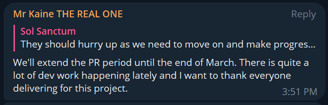 - The PR submission deadline has been extended to the end of March 2023. - Mr. Kaine