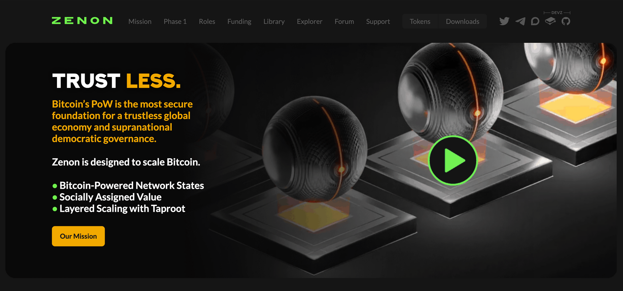 Zenon Network, the Network of Momentum (NoM), is a community run project that was launched with no pre-sale, no insider / team allocation, and no VC rounds. Community members who contribute and add value to the network can request funding through the on chain funding mechanism called Accelerator Z. Awards are granted in the native tokens called $ZNN and $QSR.